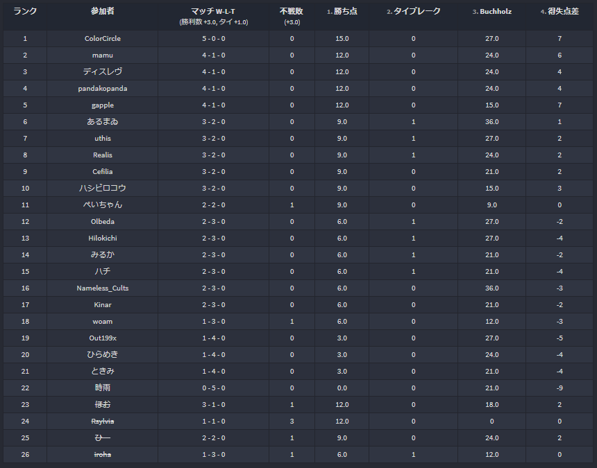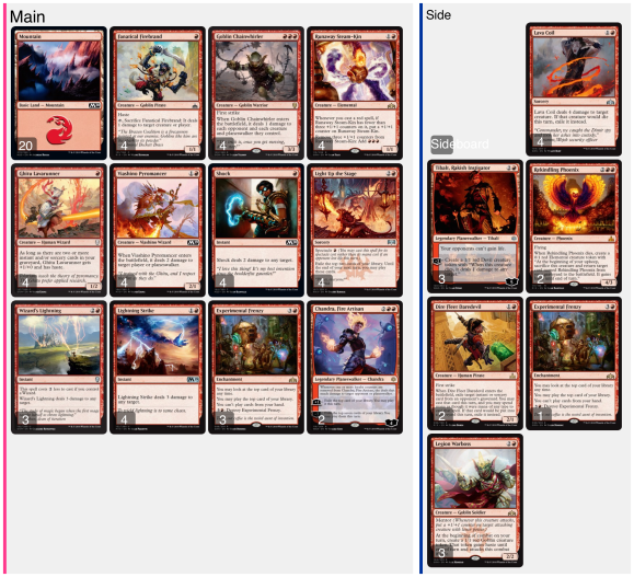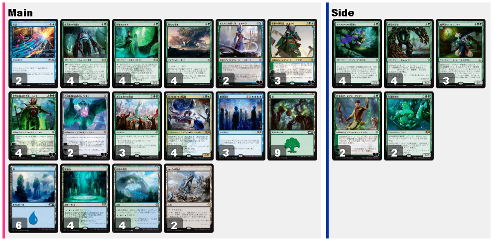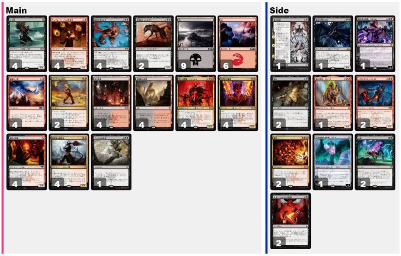 MTG Arena 第二回 初中級者大会 2019年7月10日 2023年3月13日 この記事の目次1 スイスドロー2 優勝者:ColorCircleさんのデッキ2.1 out199xさんのデッキ2.2 ディスレヴさんのデッキ2.3 あるまゐ(Mosstodon)さんのデッキ2.4 Nameless_Cultsのデッキ2.5 Realis/リアリスさんのデッキ2.6 ときみ/迷える思考の壁さんのデッキ2.7 ハチさんのデッキ スイスドロー ■参加人数:26人 ColorCircleさんの優勝でした!おめでとうございます! スポンサーリンク 優勝者:ColorCircleさんのデッキ out199xさんのデッキ ディスレヴさんのデッキ あるまゐ(Mosstodon)さんのデッキ Nameless_Cultsのデッキ Realis/リアリスさんのデッキ ときみ/迷える思考の壁さんのデッキ ハチさんのデッキ スポンサーリンク postはてブFeedly