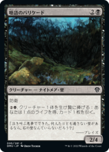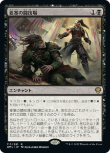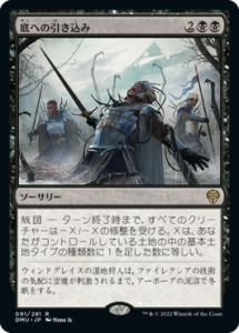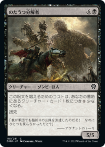 4マナ4/4威迫でしっかりしたスタッツ。コスト軽減能力はたまに役にたつか。黒のパーマネントを唱えると全体強化+威迫。フィニッシュ手段にもなる強いクリーチャー。