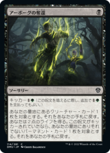 墓地のクリーチャーを手札に戻し2点ゲイン。キッカーでもう1枚パーマネントを戻せる。緑黒なら1枚デッキに入れておくとアドバンテージが取れて安心。