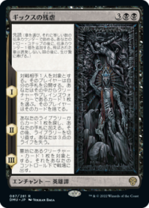 Ⅰ章はクリーチャー生け贄・ハンデス、Ⅱ章はクリーチャーを墓地から回収、Ⅲ章は生け贄しなければ1ドロー。盤面干渉、アドバンテージが弱めなので使い辛そう。