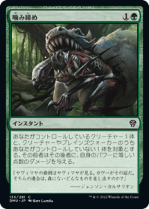 3マナ3/3と悪くないスタッツ。キッカーするとエンド時までクリーチャーに威迫を付与できる。