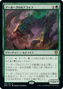 5マナ6/6トランプルと優秀なスタッツを持つ。コストを軽減する能力はおまけ程度。緑のパーマネントを唱えると全体に+1/+1カウンターが置かれるのでゲームエンド級クリーチャー。タッチ緑では強く使えない。