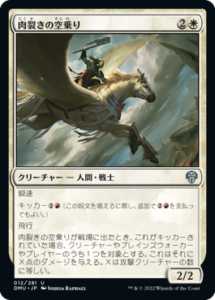 白のコモンで飛行を持つクリーチャーは《メサの騎兵》と《庇護のグリフィン》の2枚。