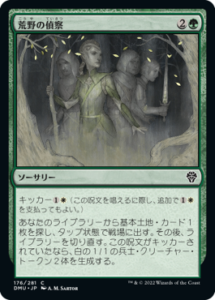 《荒野の偵察》は版図を増やすために使えるカードです。トークンが2体生成できるのも緑白との相性がいいです。