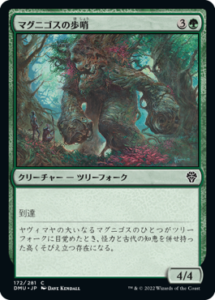 コモン、アンコモンでは4マナ4/4の《マグニゴスの歩哨》、2マナ1/3の《罠紡ぎ》、5マナ4/4の《メリアの先導》の3種類になっています。