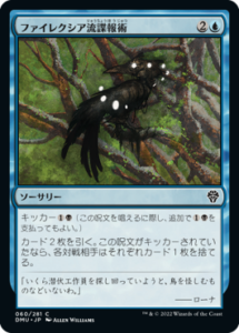青黒のマルチカラーのキッカーを持つカードは《ファイレクシア流諜報術》、《ローナの渦》、《アーボーグへの貢納》、《怪物的戦ヒル》です。