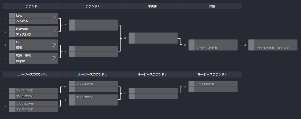 ・大会形式:トーナメント戦。一人最大5ラウンド予定