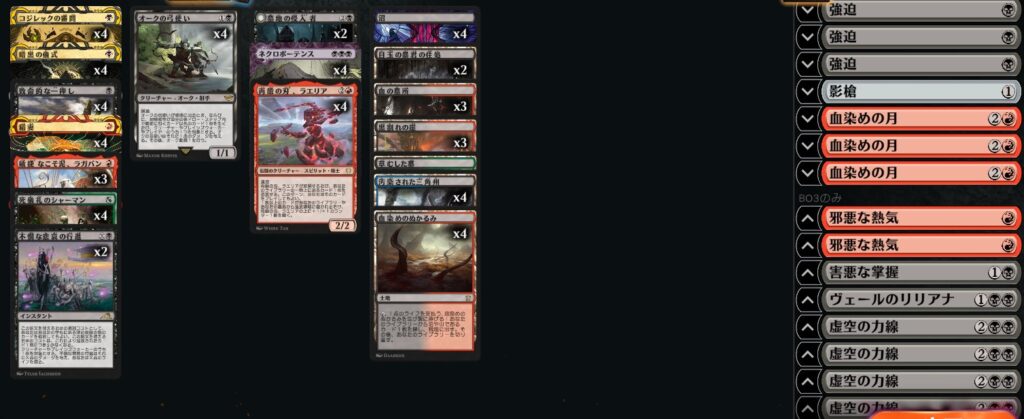 こちらはタイムレスのラクドスネクロのデッキになります。