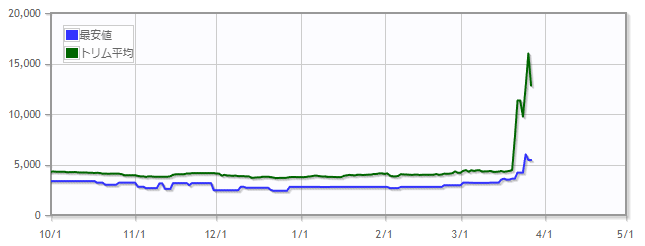 流通量の少なさと需要の高まりから値上がりが起こっていそうですね。