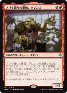 能力的には《ブリキ通りの重鎮、クレンコ/Krenko, Tin Street Kingpin》に近いものがあります。こちらも攻撃時にパワー分のトークンを生成することができます。