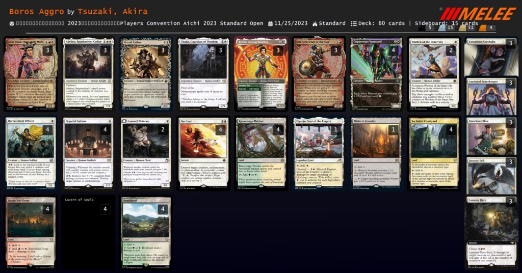 スタンダードで行われている「プレイヤーズコンベンション愛知 2023 スタンダードオープン」にて好成績を記録している「ボロスアグロ」に《千番目の月、アニム・パカル》は採用されていました。