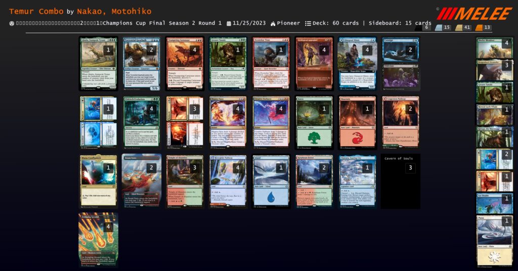 パイオニアで行われている「チャンピオンズカップファイナル シーズン2ラウンド1」にて初日全勝を記録している「発見コンボ(地質鑑定士型)」に《暴走暴君、ガルタ》は採用されていました。