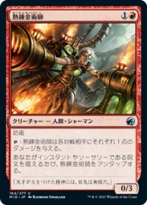 例えば、《熱錬金術師/Thermo-Alchemist》のようなタップで1点のダメージを与えるようなクリーチャーとは非常に相性がよいです。