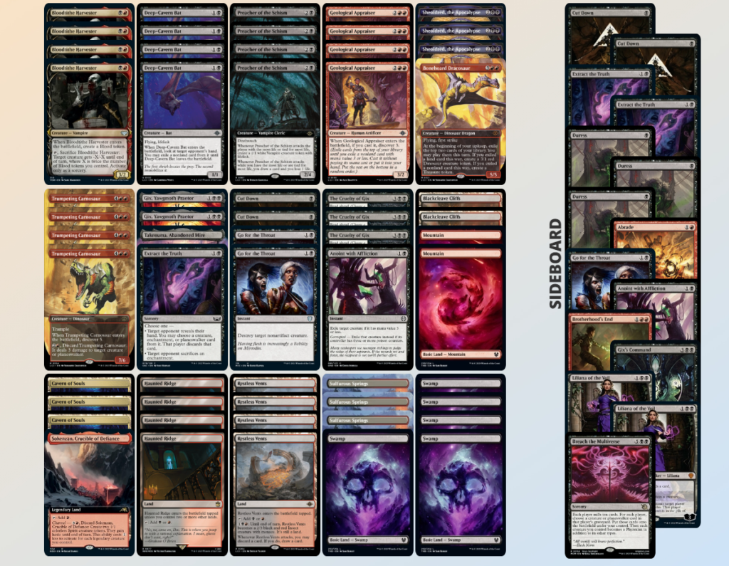 スタンダードで行われている「Standard Showcase Qualifier 2023-12-09, 4th Place, 4-1」にて「ラクドスミッドレンジ」が入賞していました。元としたデッキは超感謝祭チャンピオンズカップ特別予選で使用されたデッキだそうです。