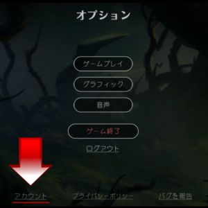 右上の歯車マークの「オプション」から左下の「アカウント」をクリックします。