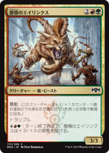 4マナ4/4暴動、トランプル。パンプ能力も活躍する。