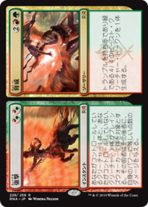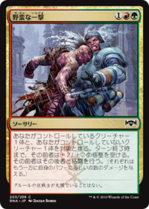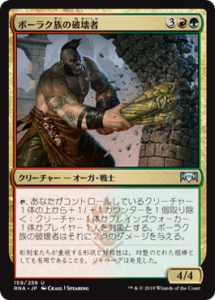 暴動持ちクリーチャーのカウンターを火力に変えるクリーチャー。