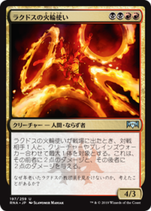 速攻2/2が強い。2点ダメージを飛ばす能力も強いが構築向けカードか。