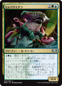 3マナで+1/+1カウンターを置いて順応を誘発させることができる。《ヒレバサミダコ/Sharktocrab》と組むと強力。普通に飛行クリーチャーを強化しても強い。