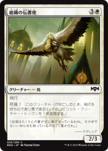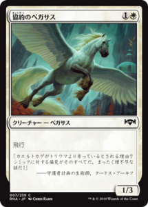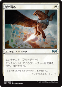 コンバットトリックとしての使い道と、飛行で攻撃を通す2つの役割が担えるカード。