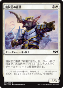 追加で1体のクリーチャーをブロックするメリット能力を持つがタフネスが低く活躍できる場面は少ない。