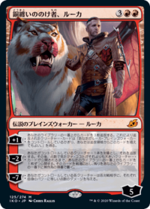 《銅纏いののけ者、ルーカ/Lukka, Coppercoat Outcast》も似たような忠誠度能力を持っています。こちらは追放したクリーチャーよりマナ・コストが大きいクリーチャーを戦場に出せます。