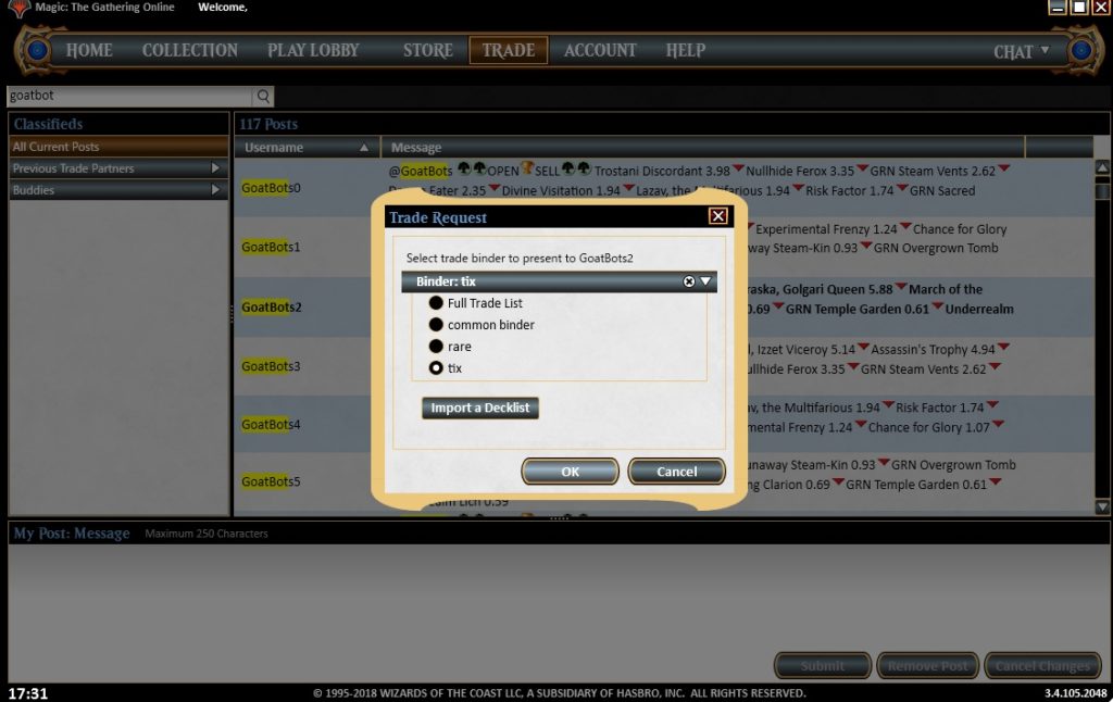 この記事ではMagic Onlineでカードを買う方法=BOTトレードする方法を紹介しました。初見ではかなり難しいと思うので、このページを見て是非トライしてみてください。