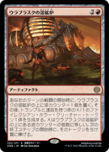 スタンダードで、毎ターンアドバンテージを稼げそうなカードとしては《ウラブラスクの溶鉱炉/Urabrask's Forge》が挙げられます。このカードなら毎ターン速攻持ちが生成されるので、毎ターンドローできる可能性があります。