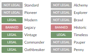また、レガシーでも禁止カードに指定されるほどのパワーを誇っています。モダンより下環境のレガシーでのみ禁止カードに指定されているというのは面白い状況ですね。