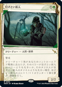 《目ざとい新人》は「カルロフ邸殺人事件」に収録された伝説のプレインズウォーカーです。レアリティはレアです。