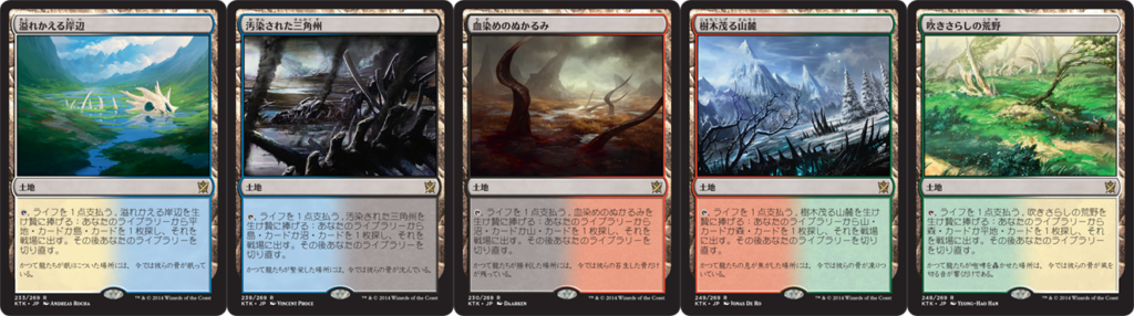 タイムレスやレガシーの環境ではフェッチランドも使用可能となっています。これらの手軽なシャッフル手段と《渦まく知識》を組み合せることで、《渦まく知識》によってライブラリートップに戻した不要牌2枚をシャッフルしてデッキトップをリフレッシュすることができます。このブレスト→フェッチの動きは非常に強力です。