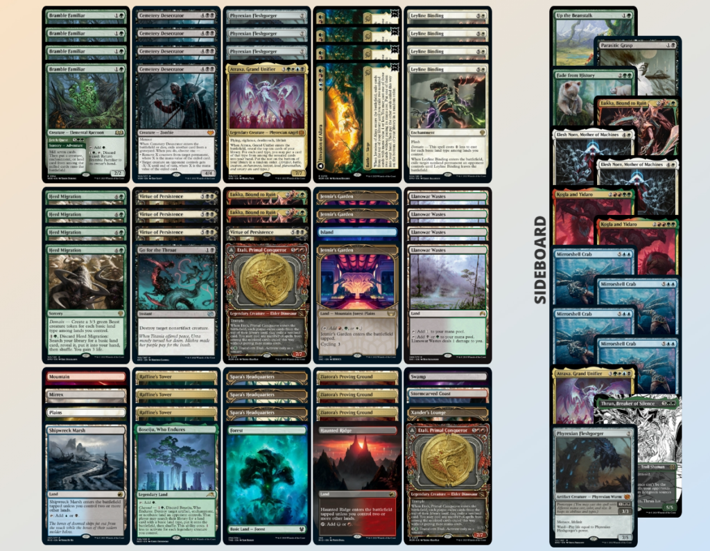 デッキの内容としては《アラーラへの侵攻》をプレイして、《木苺の使い魔/Bramble Familiar》を踏み倒して高マナ域のカードをさらに踏み倒していくというコンボデッキになります。