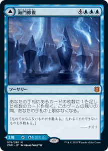 この能力は《海門修復/Sea Gate Restoration》に近い能力です。第Ⅰ章から7マナに近い能力を使えるとなればお得に感じてきます。
