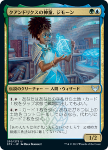 《ジモーン》は「ストリクスヘイヴン:魔法学院 」に収録された《クアンドリクスの神童、ジモーン/Zimone, Quandrix Prodigy》がいます。