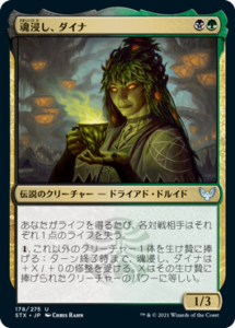 《ダイナ》は同じく「ストリクスヘイヴン:魔法学院 」に収録された《魂浸し、ダイナ/Dina, Soul Steeper》がいますね。