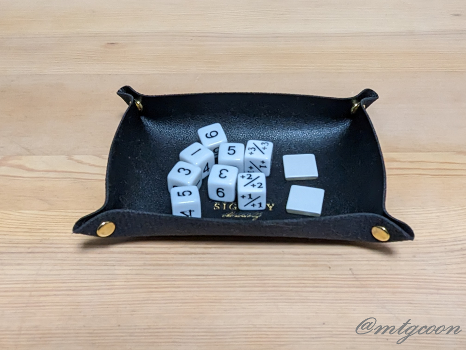 ダイスは先攻・後攻を決めたり、カードの上にカウンターとして置くことやプレインズウォーカーの忠誠度管理に使います。