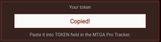登録してログインすると、「MTGA Pro」サイトの赤枠内に「token」が表示されます。「token」はクリックすることでコピーできます。