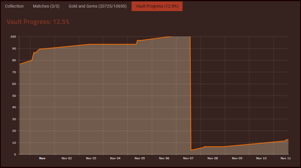 Collection、マッチ(勝敗数)、Gold/Gemの推移や隠し要素であるVaultの進捗を確認できます。