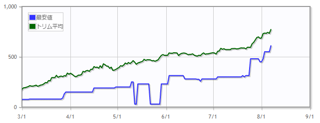 シングル価格は収録時からじわじわ上昇を続けていて、200円代から750円まで値上がりしています。