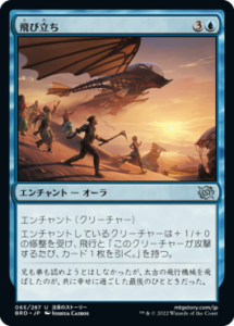 クリーチャーに+1/+0修正、飛行、攻撃するたび1ドローを与えるオーラ。