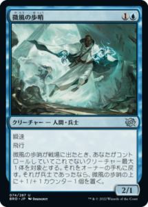 2マナ2/1瞬速、飛行で戦場に出たときに兵士を戻すと3/2で出る。