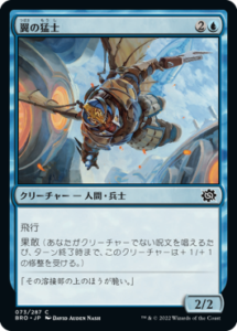 2マナ2/1で(3)マナ払うことで兵士に飛行を付与する。