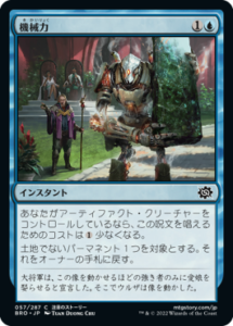 《マイトストーンの稼動力》とは相性がよく、セカンドドローの誘発と飛行機械トークンを4/4にする動きができる。