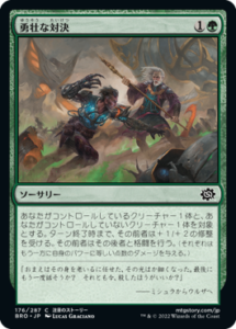 自分のクリーチャーに+1/+2修正した後で格闘するソーサリー。
