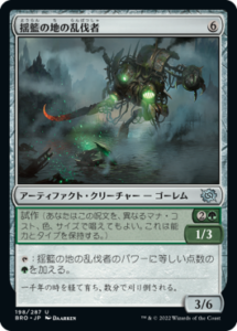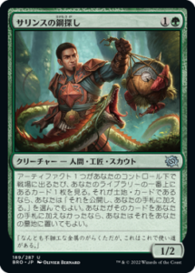 2マナ1/2でアーティファクトが戦場に出るたびライブラリートップを見て土地であれば手札に加えることができる。
