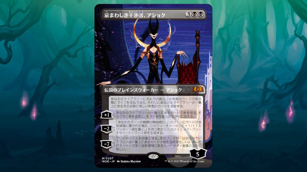 「エルドレインの森」に収録されるカード《忌まわしき干渉者、アショク/Ashiok, Wicked Manipulator》を取り上げたいと思います。