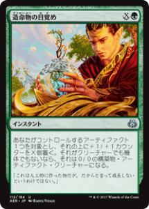 出来事の面ではX個のカウンターを置くことができます。最近の既存のカードだと《造命物の目覚め/Lifecraft Awakening》が比較的近めなカードになっています。