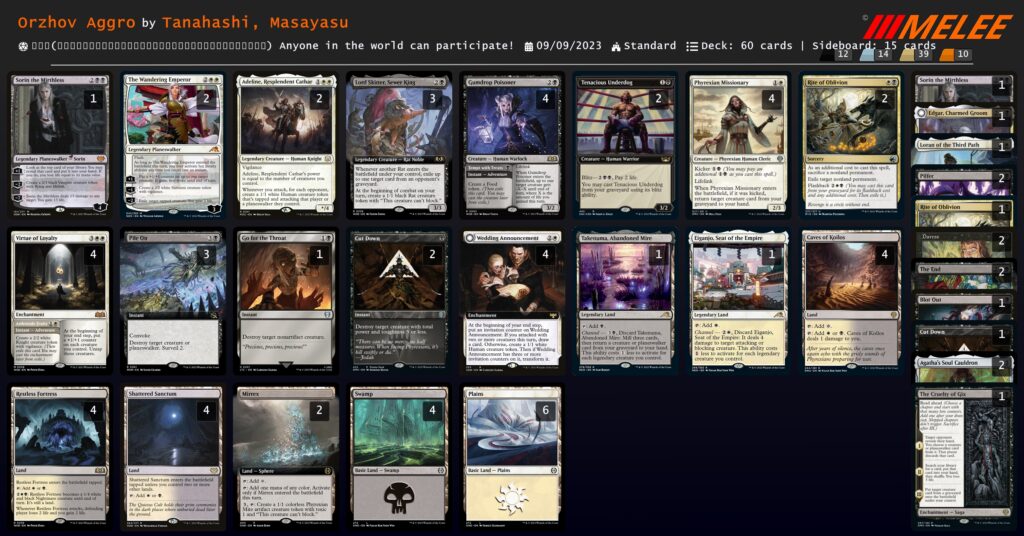 こちらのデッキリストはオルゾフアグロです。2023/09/09に行われた、蒼紅杯でTOP8の成績を残したリストになります。