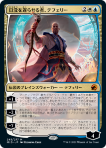《日没を遅らせる者、テフェリー/Teferi, Who Slows the Sunset》と組み合わせてみるのも面白そうです。[+1]で毎ターンクリーチャーをタップすることが可能で、土地もアンタップできるのでマナの支払に充てることもできます。