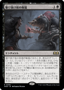 嫌な役割が付いているのであれば、新しい役割を割り振ってあげるという手段もあります。《駆け抜け侯の祝福/Lord Skitter's Blessing》などのカードでは役割を付与することができるので、呪われし者・役割・トークンを更新して新しい役割にして逆に強化してあげましょう。